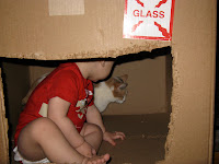 Jack has developed a fondness for climbing in and out of boxes. Sometimes Kizzie joins him, sometimes not.