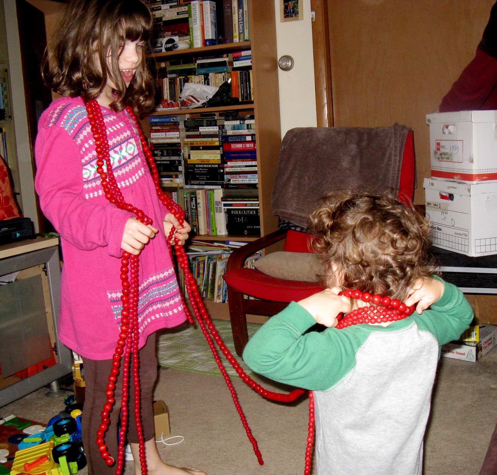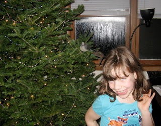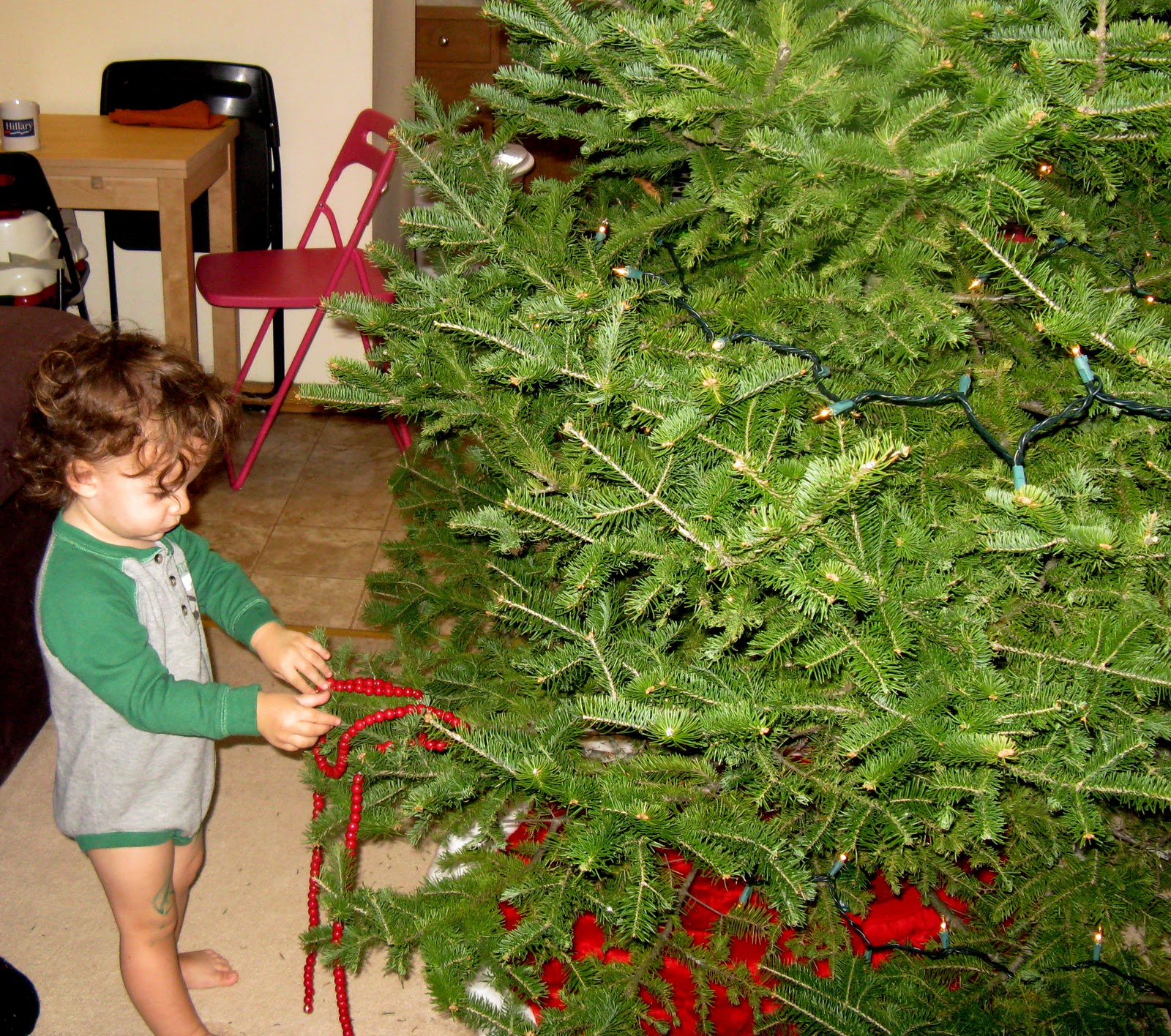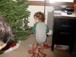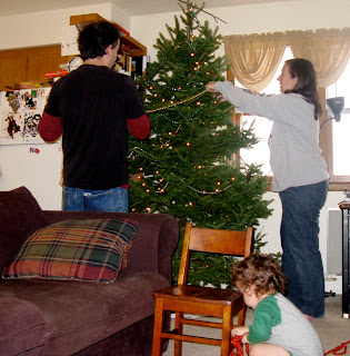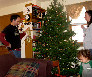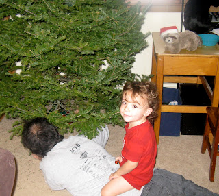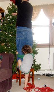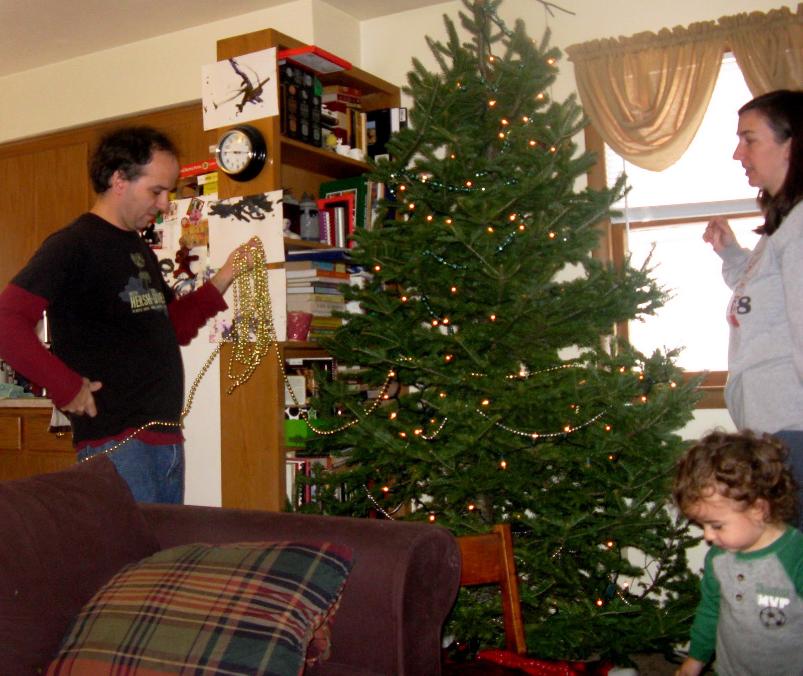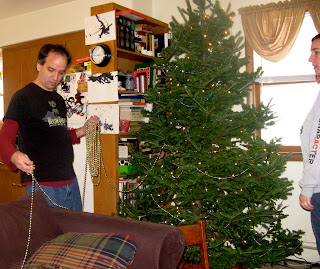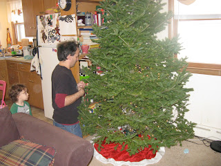 And steadies Thom while he waters the tree